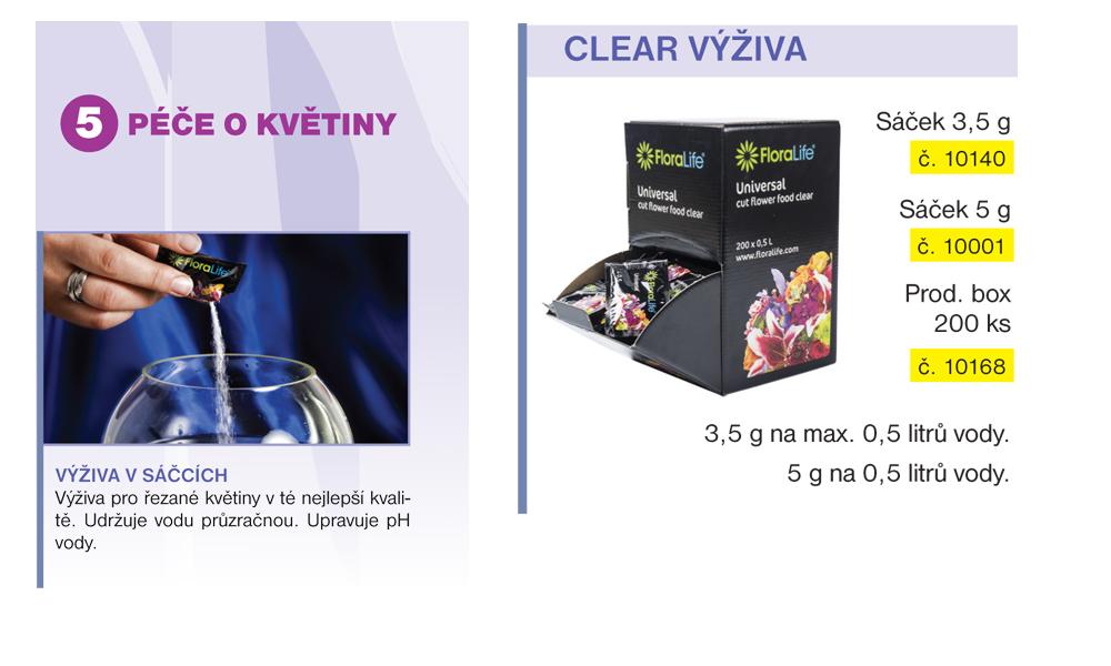 Prípravok zaistí plný rozkvet, dodá živiny a udrží čistú vodu vo vázach. Vrecko 5 gramov je určené pre vázy s objemom cca 0,5 až 1 liter vody. -Clear-300_powder_1.0_CZ_CS.pdf"" target=""_blank"">FLORALIFE Karty bezpečnostných údajov k produktu
