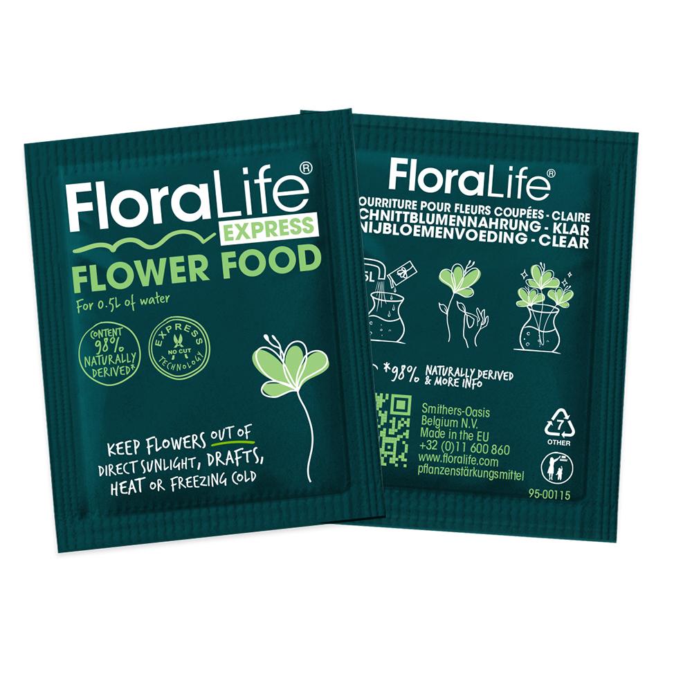 "Nie je potrebné zrezávať stonky !!! Prípravok zaistí plný rozkvet, dodá živiny a udrží čistú vodu vo vázach. Vrecko 5 gramov je určené pre malé vázy s objemom do 0,5 až 1 liter vody. Food-Clear-300_powder_1.0_CZ_CS.pdf"" target=""_blank"">FLORALIFE Karty bezpečnostných údajov k produktu