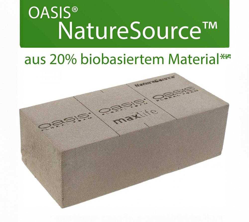 Aranžovacia hmota OASIS® NatureSourceTM Maxlife sa skladá z 20% bio surovín a má všetky osvedčené vlastnosti zelenej aranžovacej hmoty. S novým NatureSourceTM od OASIS získate hmotu pre rezané kvety tej najvyššej kvality, ktorá bola vyrobená s ohľadom na udržateľnosť!