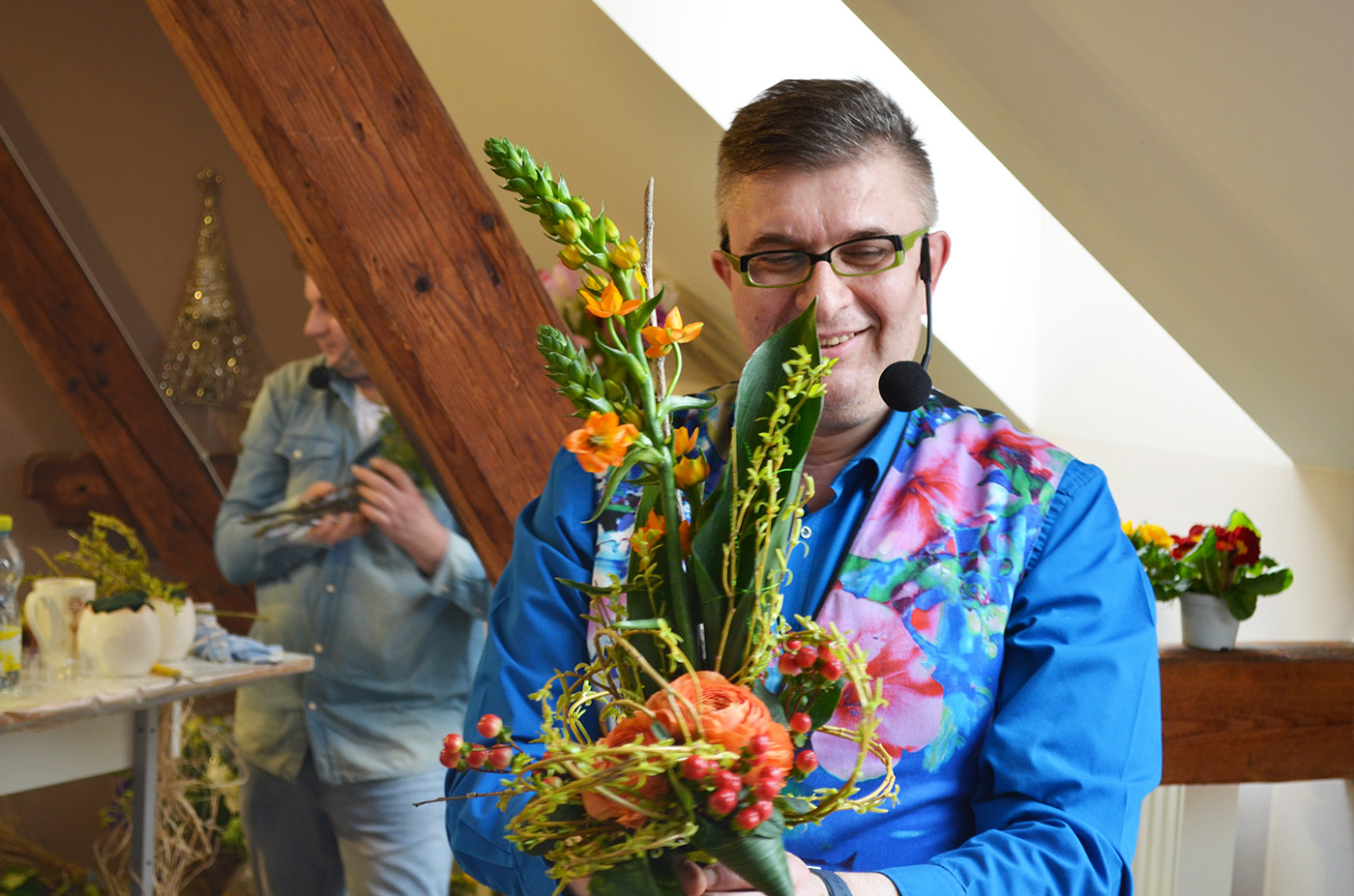 Jarní floristické aranžování se konalo 25. března 2017. Tentokrát své floristické uměníá předvedl Petr Kopáč a Pavel Hruška. Ten se zhostil i dražby všech vytvořených aranžmá.